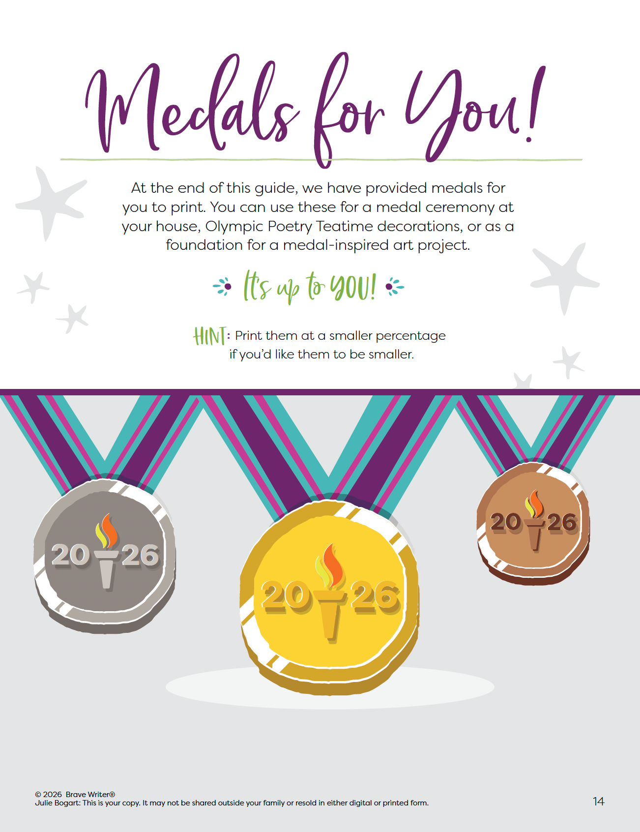 - printable medals for hands-on play and decoration