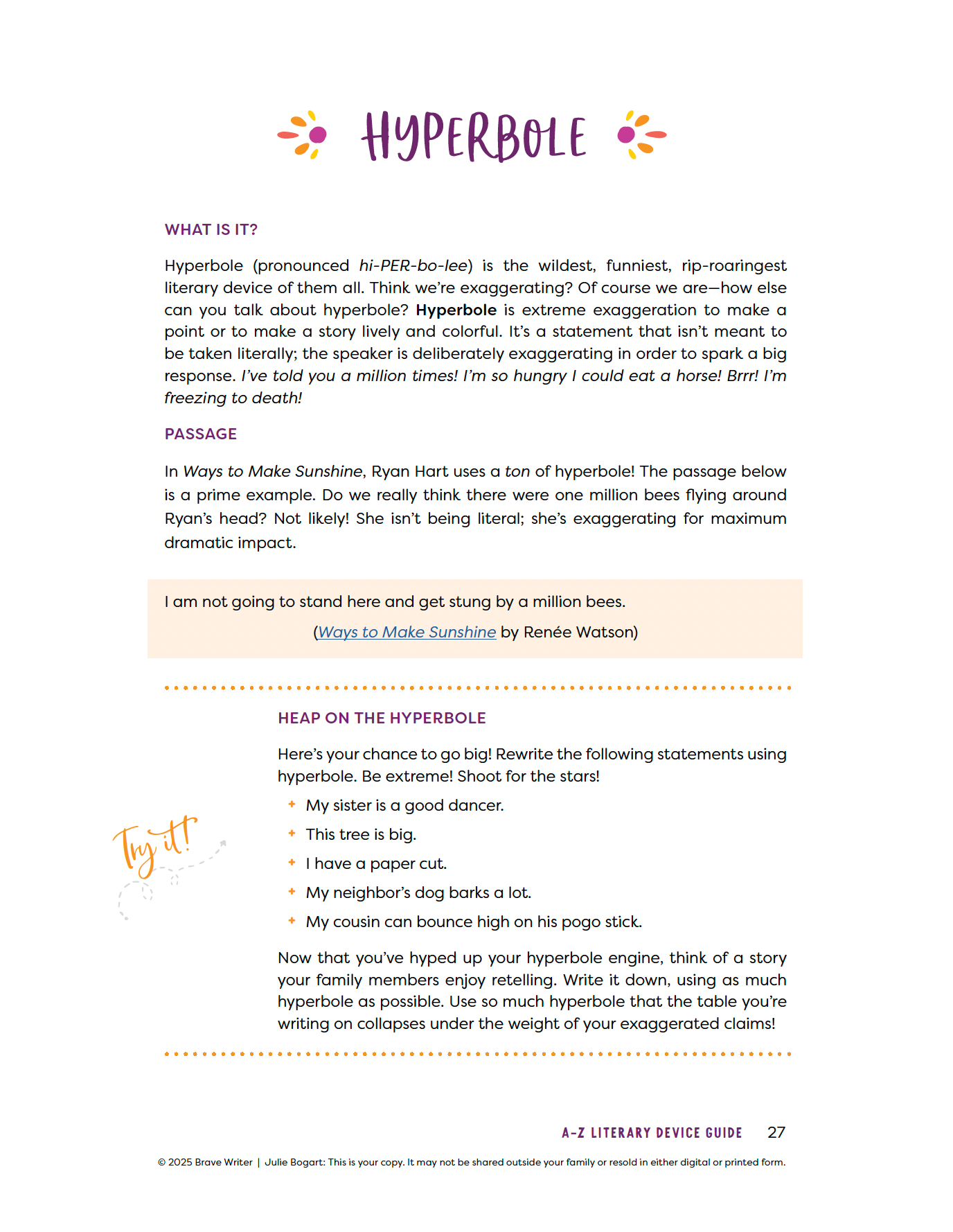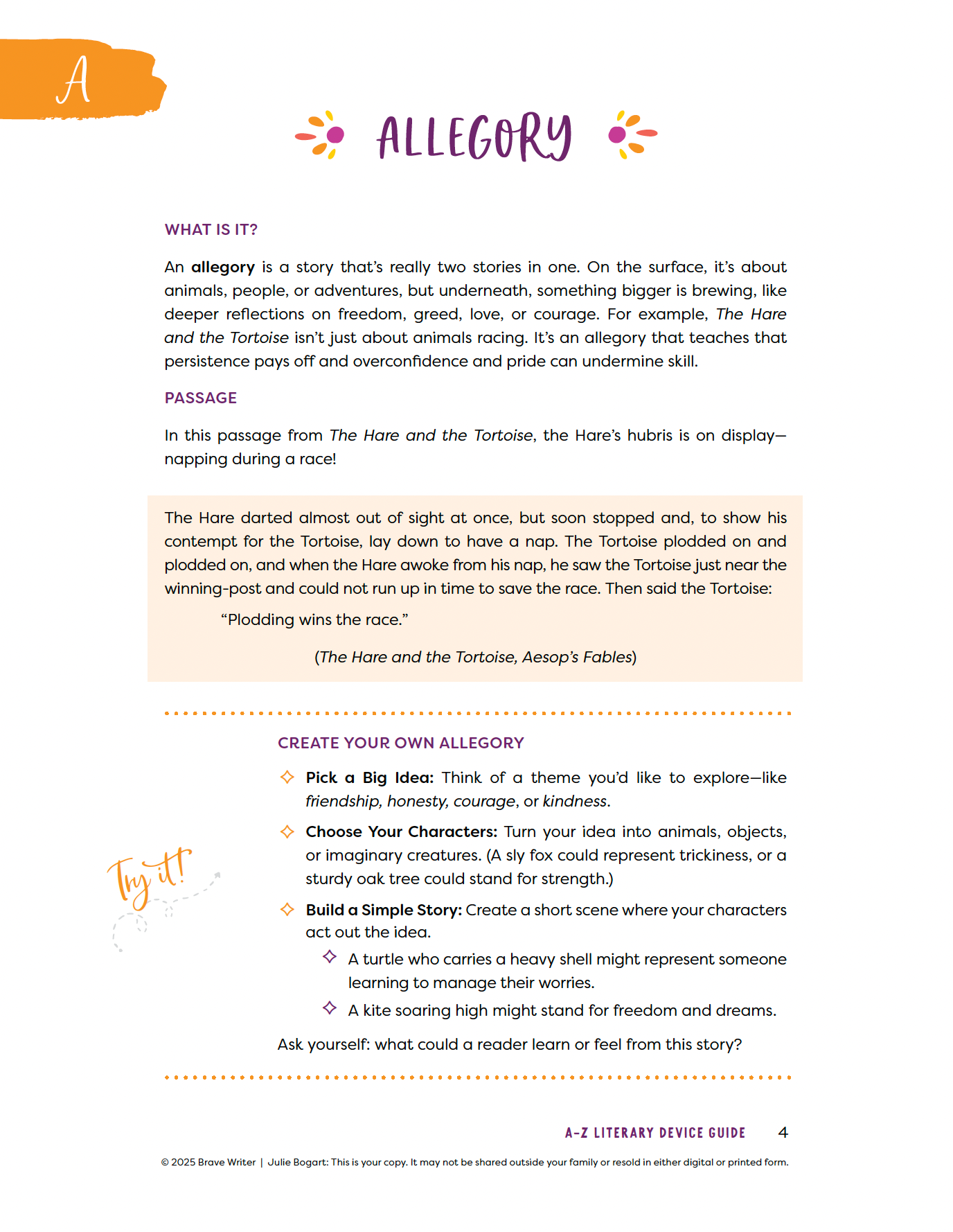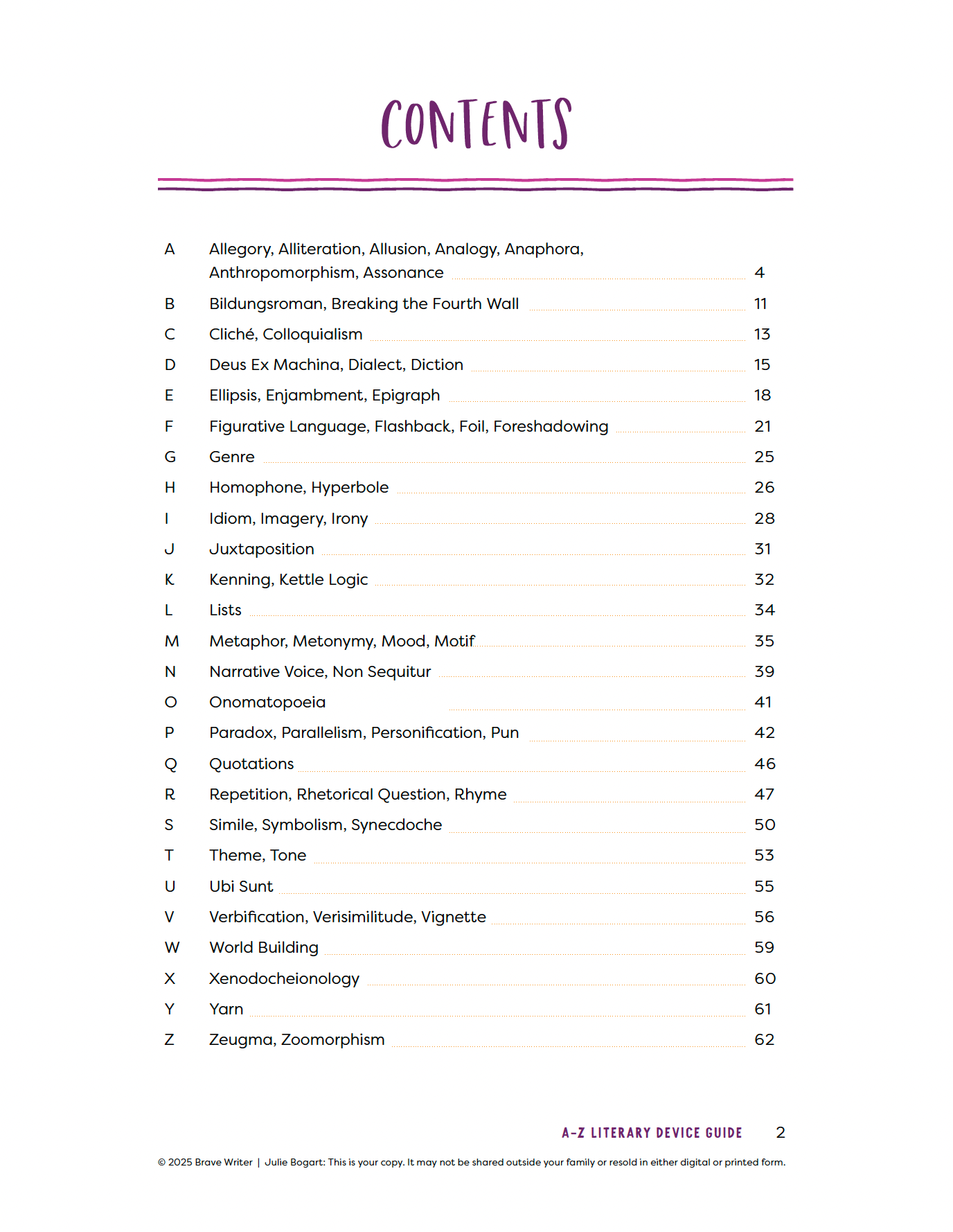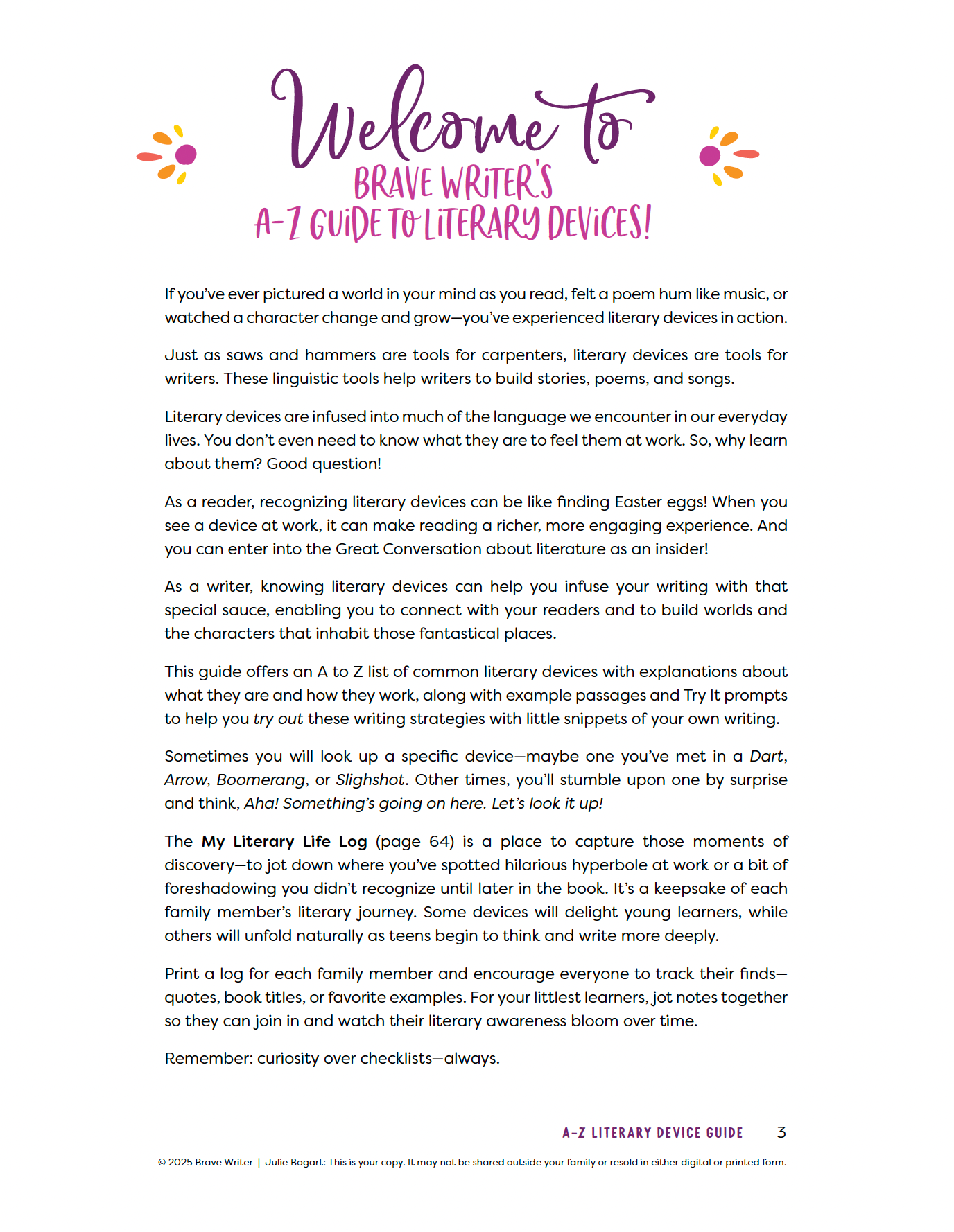 The A–Z Guide to Literary Devices helps your family make sense of those sparks of literary magic.